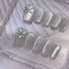 Product OverviewThis nail art features a nude cat-eye base with 3D embossed elements, including appl..